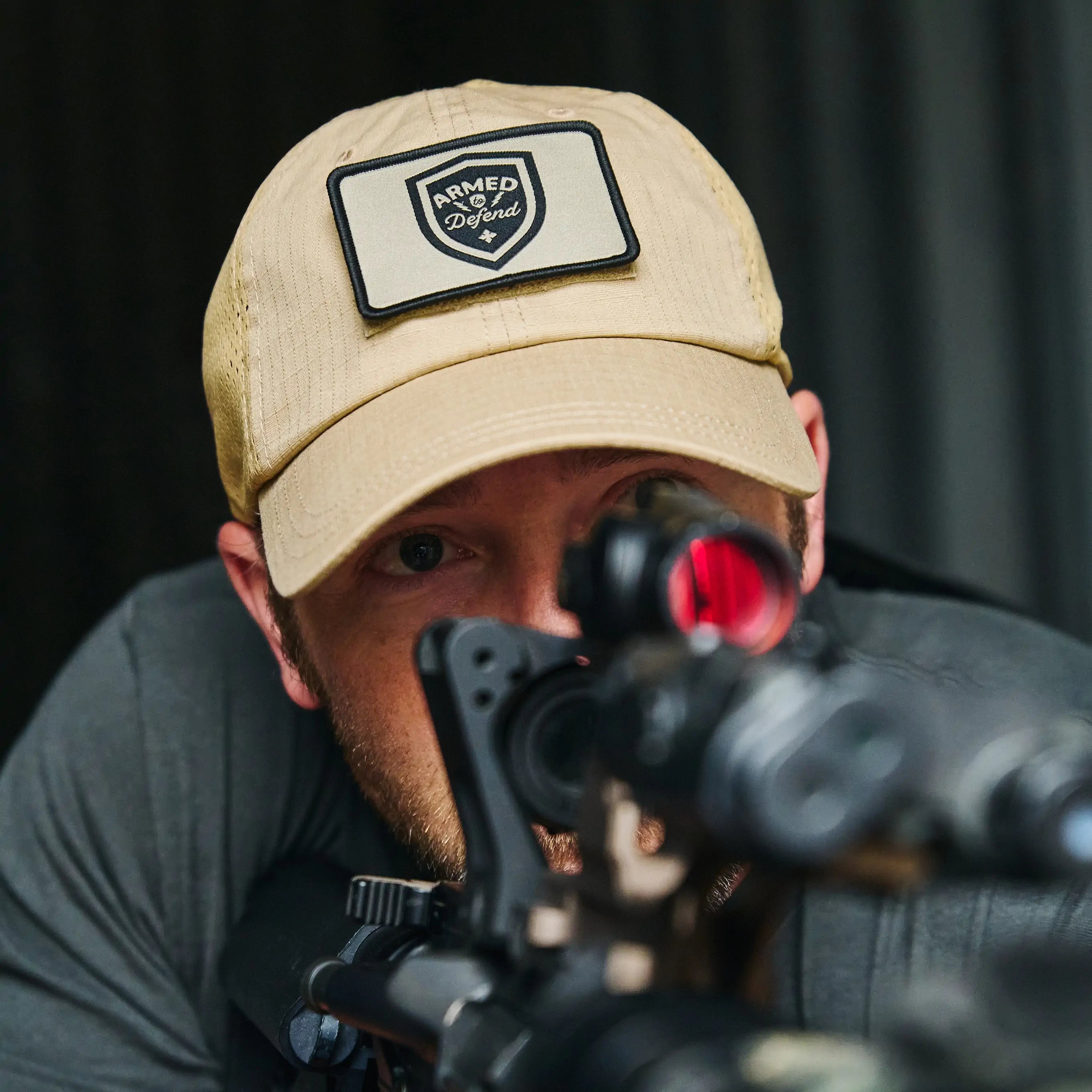 The Operator Hat with Armed to Defend Patch represents readiness.